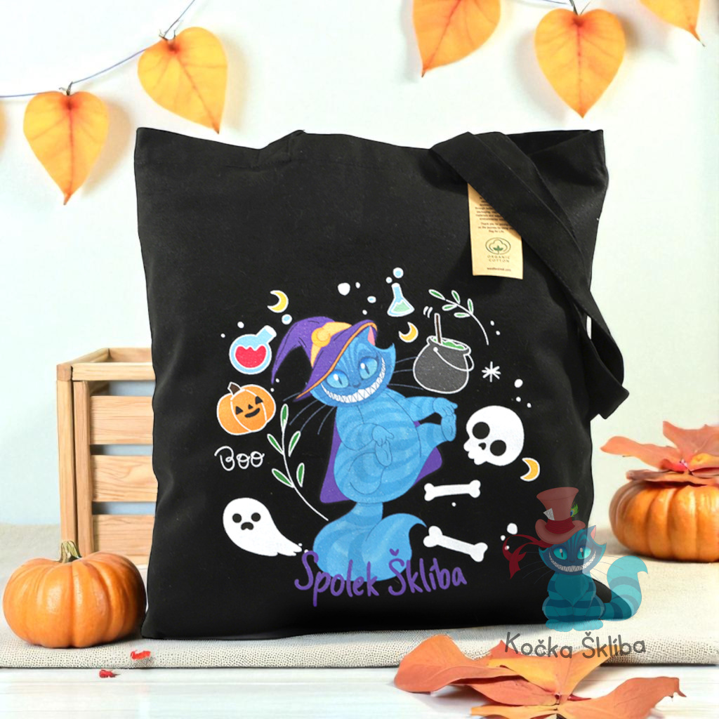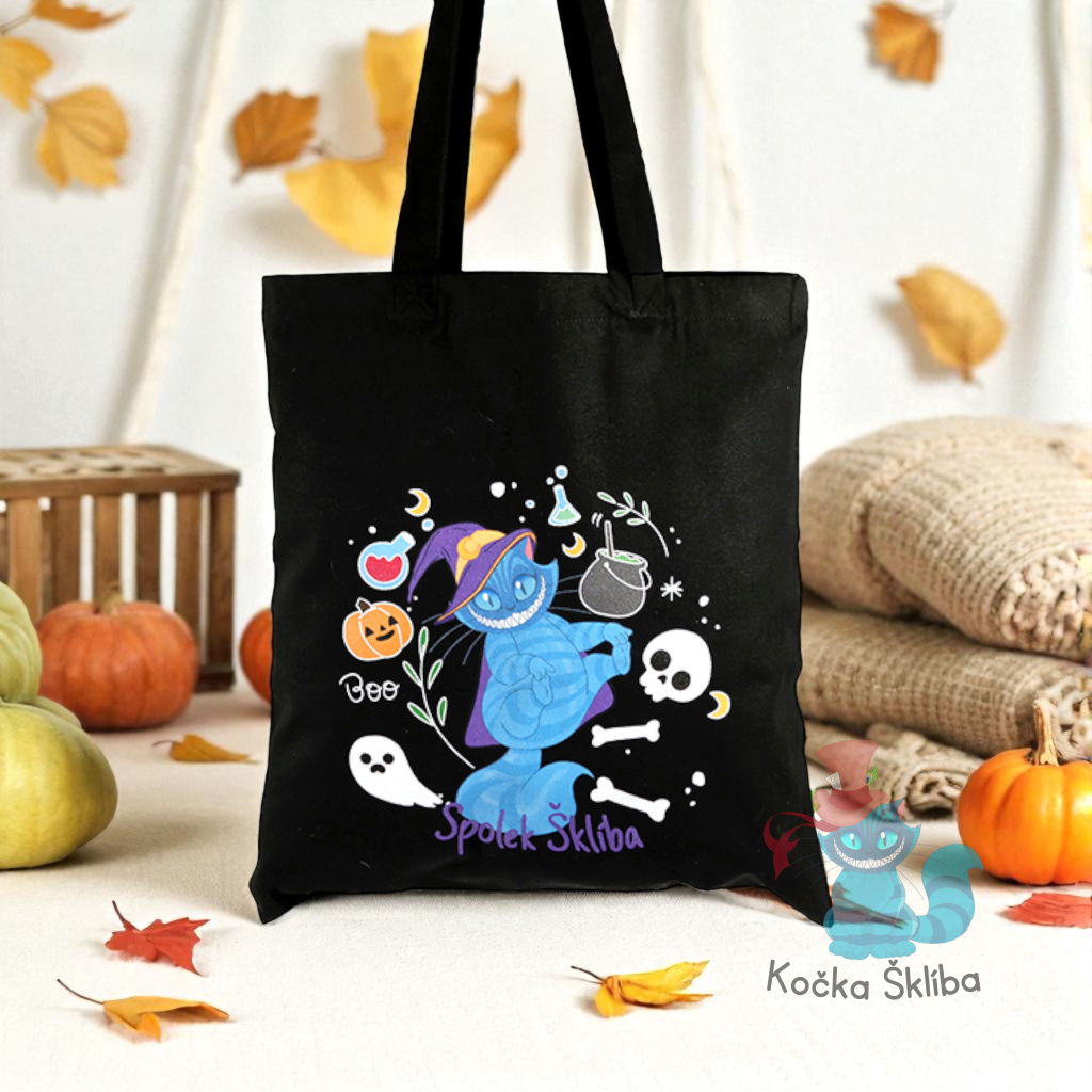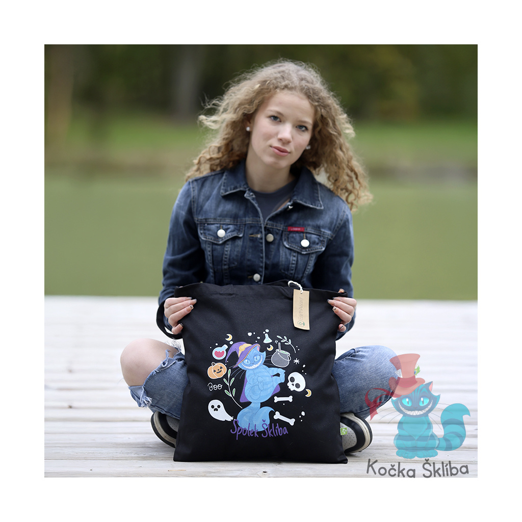 Projděte se městem se stylem a osobitostí s touto unikátní taškou! Na černém plátně vyniká šibalský čarodějnický motiv kočky Šklíby, obklopené tajemnými lebkami a magickými symboly, který dodává běžnému dni trochu kouzla. Tato taška je nejen praktickým doplňkem pro každodenní nošení, ale také perfektním vyjádřením Vaší osobnosti. Odolná, prostorná a s ručně vytvořeným designem je to must-have kousek pro ty, kdo chtějí nosit své nákupy s příběhem. Buďte styloví s touto taškou, která je stejně jedinečná jako její nositel!