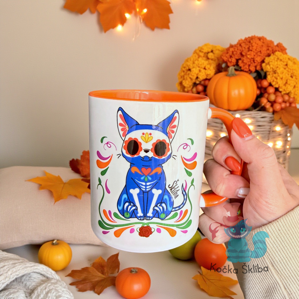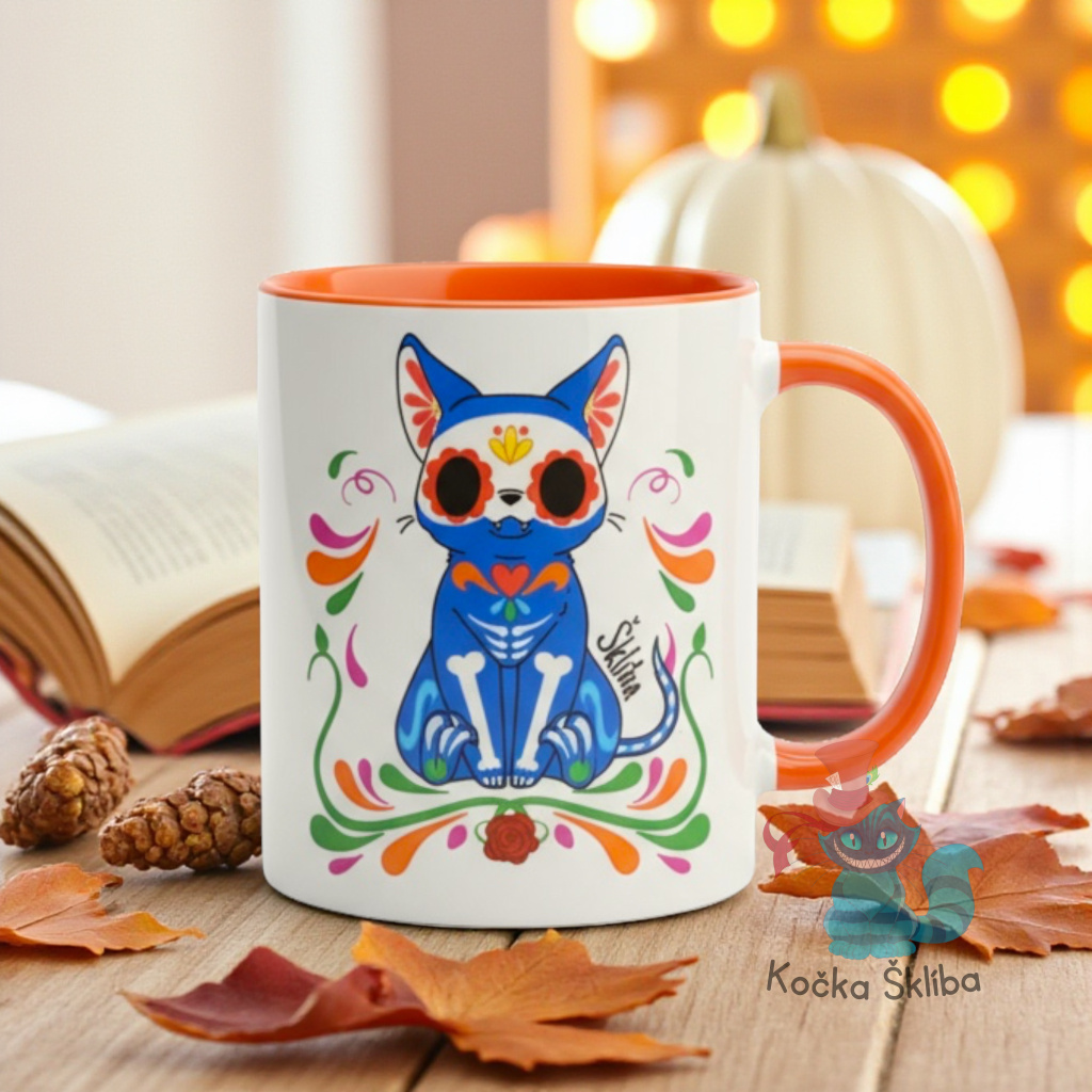Začněte den s nádechem kouzla! Tento jedinečný hrnek s živým designem představuje kočičku zdobenou v tradičním mexickém stylu "Día de los Muertos", která dodá energii každému doušku vašeho oblíbeného nápoje. Nejen, že je tento hrnek dokonalým společníkem pro vaši ranní kávu nebo odpolední čaj, ale také je to originální dílo plné kreativity. S jeho živými barvami a odvážným designem osvěžíte každý kuchyňský prostor a každé pití se stane malým rituálem. Kupte si tento hrnek a přidejte trochu umění do svých denních rituálů.