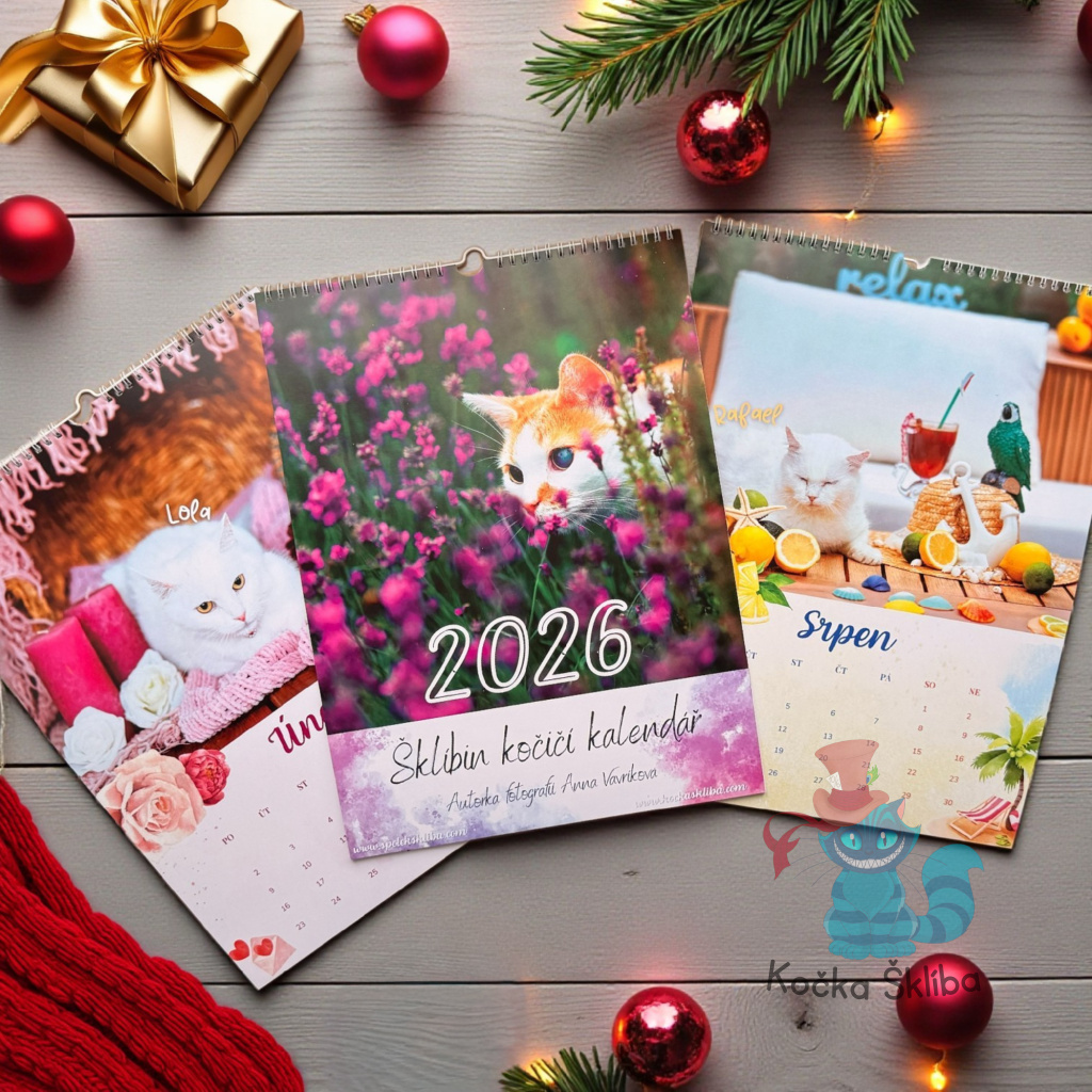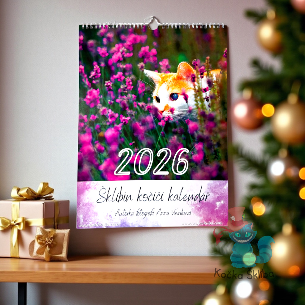 Každý měsíc vám zpříjemní velkoformátová fotografie kočky ze Šklíby, laděná do atmosféry ročních období. Od něžného jara přes radostné léto až po hřejivý podzim a kouzelnou zimu – kalendář vás provede rokem s kočičí elegancí a špetkou hravosti.