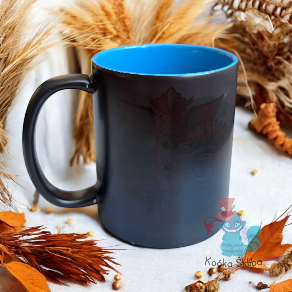 Nechte se přenést do světa rituálů, symboliky a kouzel. Tento zdánlivě obyčejný černý hrnek skrývá tajemství, které se zjeví až s horkým nápojem. Po zalití se před vámi objeví výrazný šamanský totem a nezaměnitelná Šklíba s bohatě zdobenou čelenkou. Ať už věříte na duchovní sílu symbolů, nebo jen toužíte po kávě s příměsí magie – tenhle hrnek je přesně pro vás.