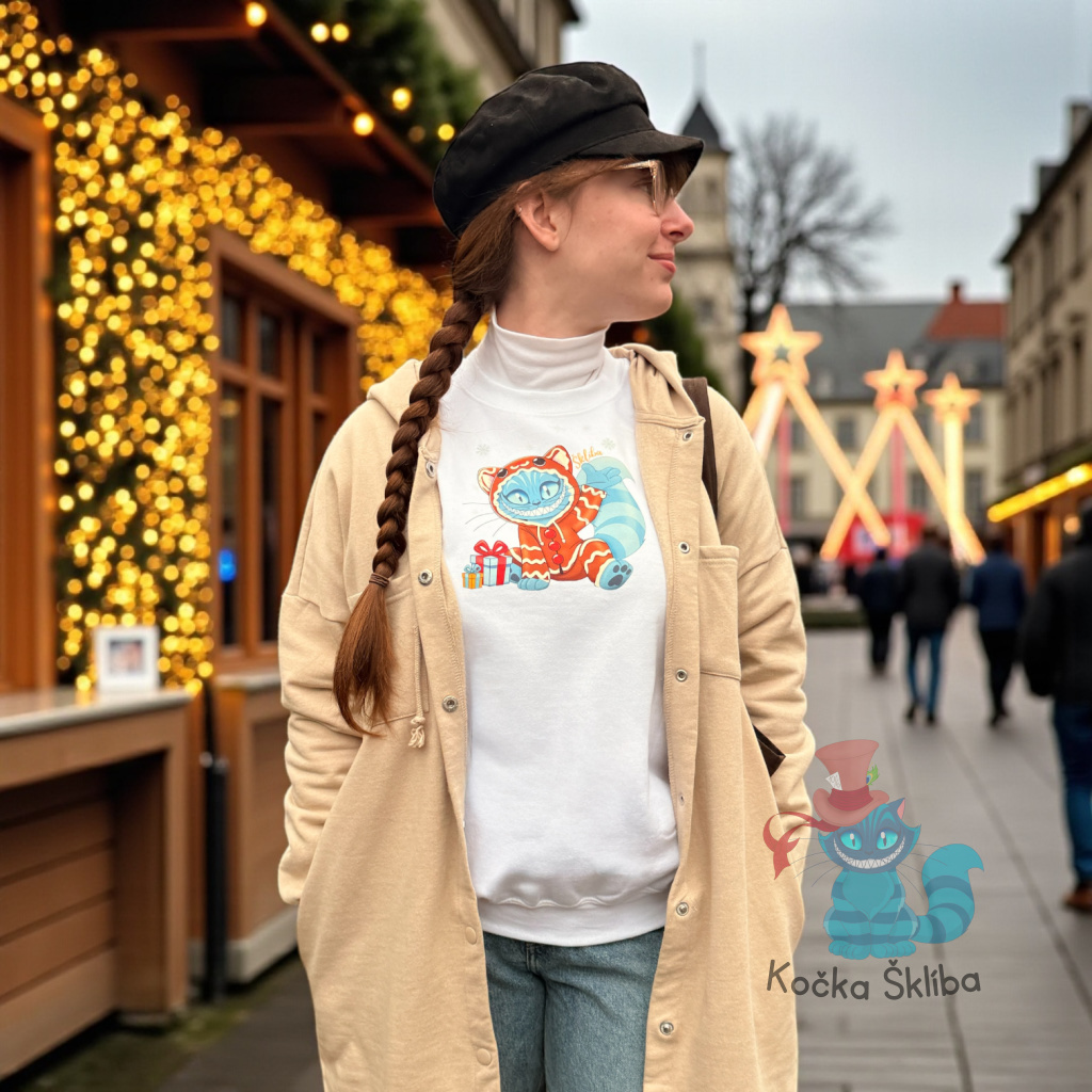 Mikina Perníček – hřejivý obleček pro všechny, kteří milují Vánoce i šibalské kočičí úsměvy.