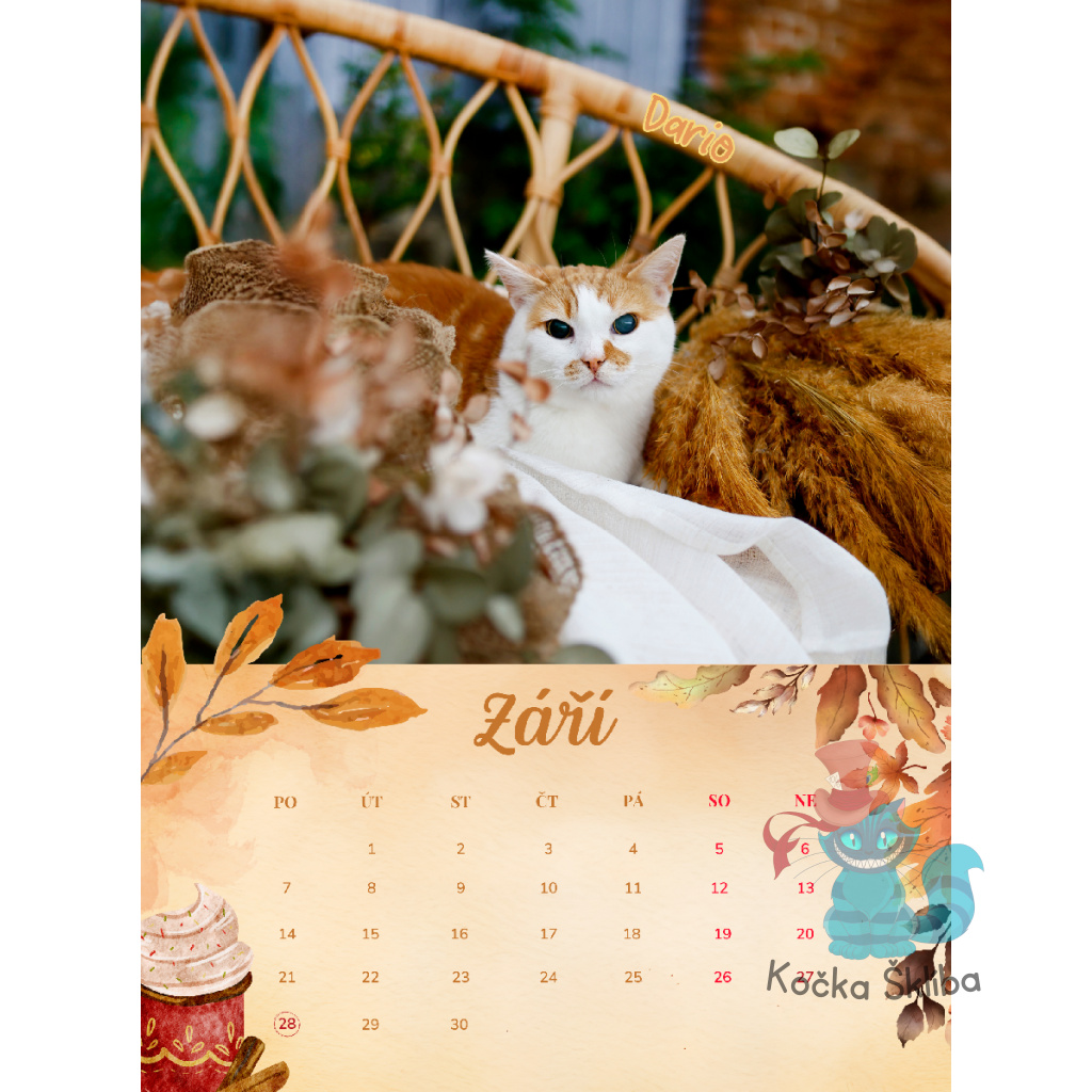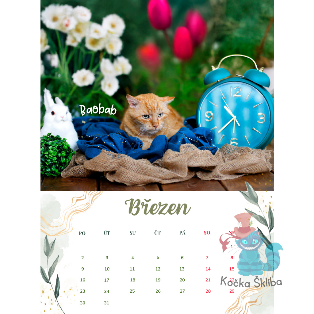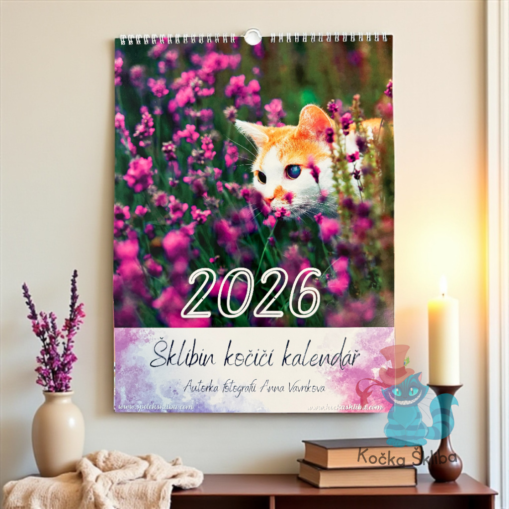 Každý měsíc vám zpříjemní velkoformátová fotografie kočky ze Šklíby, laděná do atmosféry ročních období. Od něžného jara přes radostné léto až po hřejivý podzim a kouzelnou zimu – kalendář vás provede rokem s kočičí elegancí a špetkou hravosti.